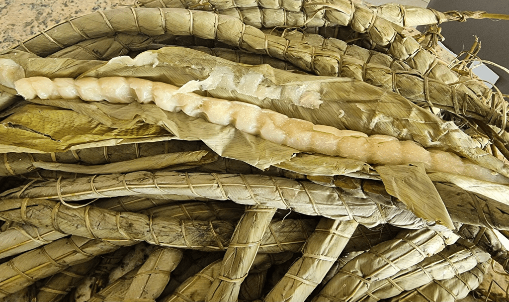 Miondo : On ne peut pas parler de ndolé sans citer son acolyte fidèle. Le miondo, c’est même le complément parfait pour de nombreux plats au Cameroun. Préparé à base de pâte de manioc fermentée, enveloppée dans des feuilles et cuite à la vapeur, c’est doux, élastique et ça glisse bien avec la sauce. Chez les Sawa, c’est obligatoire.